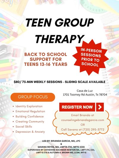 The goal of these group therapy sessions is not only to aid in identity exploration for teens/adolescents, but also to build connections with other teens/tweens. In doing so, support systems, resources, education, and emotion regulation skills will be built and expanded upon. If you are interested in this group, please do not hesitate to reach out via email and/or at Brianda's website.